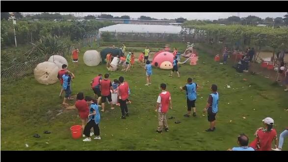 橙隊和綠隊率先把水球戰鬥完了,不怕,還有桶裏的水,幹脆來個潑水節,哈哈哈~~